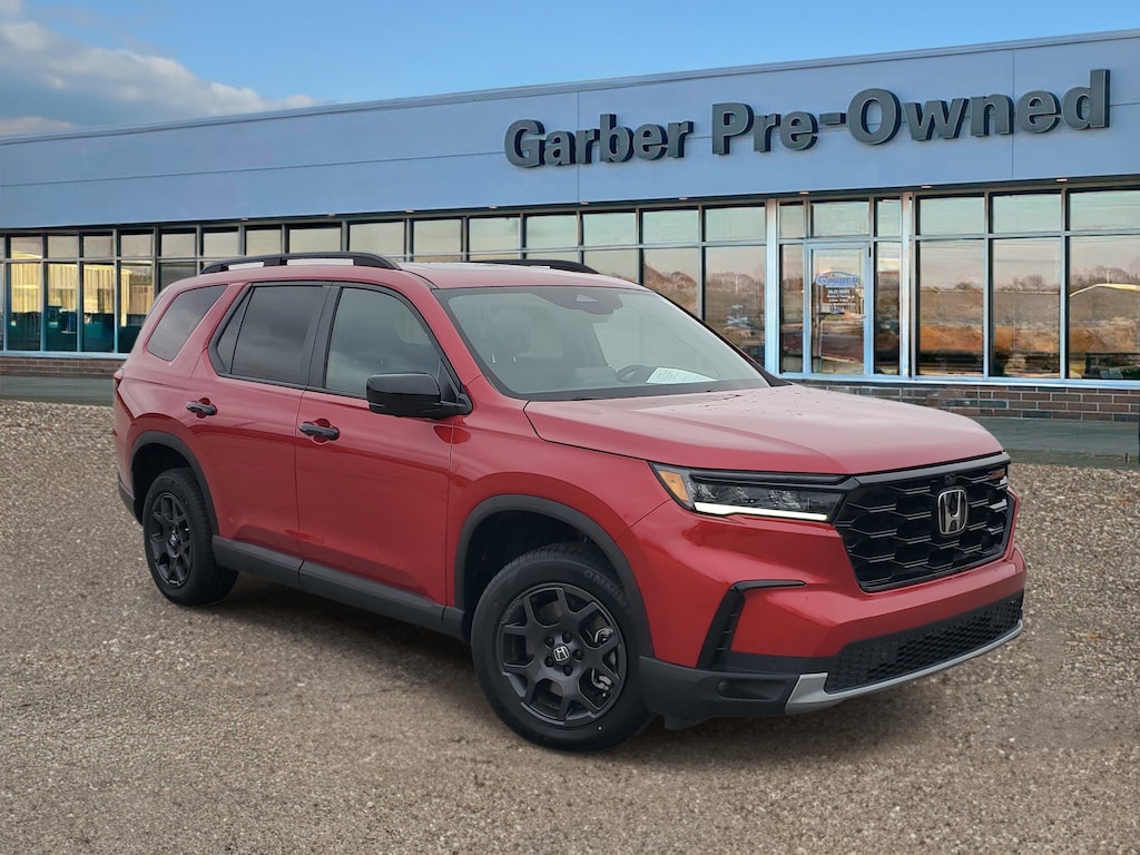 ** Recent Arrival! ** CARFAX One-Owner ** CLEAN CARFAX - NO ACCIDENTS!! **, ** FULLY INSPECTED AND DETAILED!! **, ** APPLE CARPLAY **, ** ANDROID AUTO **, ** ALL WHEEL DRIVE **, ** WELL MAINTAINED!! **, ** EXCELLENT CONDITION!! **, ** POWER SUNROOF / MOONROOF **, Pilot TrailSport, 4D Sport Utility, 3.5L V6 DOHC 24V, 10-Speed Automatic, AWD, Radiant Red Metallic II, 3rd row seats: split-bench, Adaptive Cruise Control: Adaptive Cruise Control (ACC) with Low-Speed Follow, AM/FM radio: SiriusXM, Apple CarPlay/Android Auto, Auto High-beam Headlights, Auto-dimming Rear-View mirror, Automatic temperature control, Blind Spot Information (BSI) System warning, Brake assist, Dual front side impact airbags, Durable Synthetic Leather Seat Trim, Exterior Parking Camera Rear, Four wheel independent suspension, Front dual zone A/C, Front fog lights, Fully automatic headlights, Garage door transmitter: HomeLink, Heated door mirrors, Heated Front Bucket Seats, Heated front seats, Lane departure: Lane Keeping Assist System (LKAS) active, Memory seat, Power door mirrors, Power driver seat, Power Liftgate, Power moonroof, Power passenger seat, Radio: 245-Watt Audio System, Reclining 3rd row seat, Remote keyless entry, Security system, SiriusXM, Speed-Sensitive Wipers, Telescoping steering wheel, Turn signal indicator mirrors.