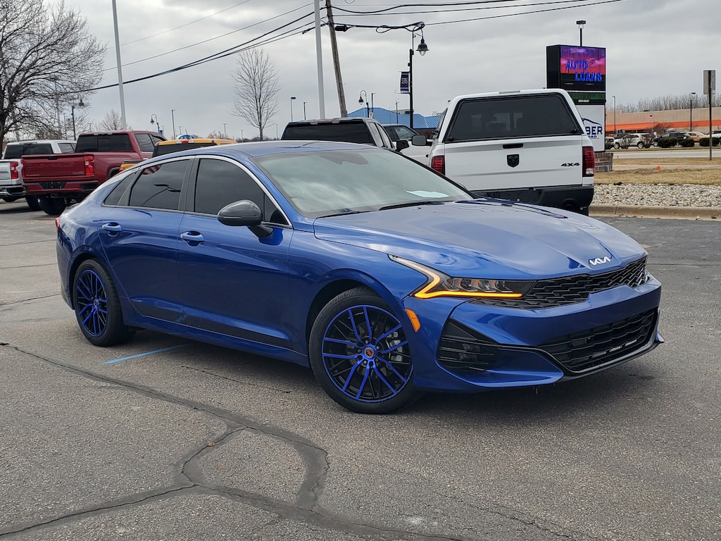 ** Recent Arrival! ** Priced below KBB Fair Purchase Price! ** CARFAX One-Owner ** CLEAN CARFAX - NO ACCIDENTS!! **, ** LOCAL TRADE **, ** NAVIGATION **, ** NAV **, ** GPS **, ** FULLY INSPECTED AND DETAILED!! **, ** APPLE CARPLAY **, ** ANDROID AUTO **, ** LOW MILEAGE!! **, ** ALL WHEEL DRIVE **, ** WELL MAINTAINED!! **, ** EXCELLENT CONDITION!! **, K5 GT-Line, 4D Sedan, I4, 8-Speed Automatic, AWD, Sapphire Blue, Black Cloth, AM/FM radio: SiriusXM, Apple CarPlay & Android Auto, Auto High-beam Headlights, Automatic temperature control, Brake assist, Cloth/Leatherette Seat Trim, Dual front side impact airbags, Electronic Stability Control, Four wheel independent suspension, Front dual zone A/C, Front fog lights, Fully automatic headlights, Heated door mirrors, Heated Front Bucket Seats, Heated front seats, Navigation System, Power door mirrors, Power driver seat, Radio: AM/FM/MP3 Audio System, Remote keyless entry, Security system, Turn signal indicator mirrors. 25/33 City/Highway MPG Odometer is 12829 miles below market average!